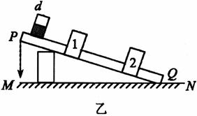 ,b间通过时,光电计时器就可以显示物体的挡光时间.现利用图乙所示装置测量滑块和木块间的动摩擦因数,图中MN是水平桌面,Q是木板与桌面的接触点,l和2是固定在木板上适当位置的两个光电门,与之连接的两个光电计时器没有画出,此外在木板顶端的P点还悬挂着一个铅锤.让滑块从木板的顶端滑下,光电门1,2各自连接的计时器显示的挡光时间分别为5.0×10-2s和2.O×10-2s.用游标卡尺测量小滑块的宽度d,如图丙所示.请你回答以下问题: