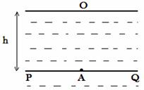 23(16分)如图所示,PQ是水面下h处水平固定的轨道,轨道上A点有一个可发出红色细光束的光源,且细光束射到正上方水面的O点。从某时刻开始,光源沿PQ轨道向右做初速度为0的匀加速运动,光源运动过程中发光方向一直指向O点,经时间t光源发出的光恰好在水面上方消失。已知水对红光的折射率为n ,真空中光速为c 。求: