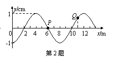 2.如图所示,一列横波在介质中向右传播,t=0时刻波形如图所示,P、Q两质点的平衡位置分别为x=6m、x=11m,已知波速v=4m/s,则t=1.5s时,P的位移为 ;t= s时,Q点第一次回到平衡位置。