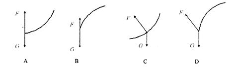 =H-t2。则在这段时间内关于物体B的受力情况和运动轨迹正确的是下列哪个图?