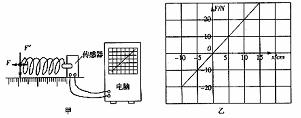 如图甲所示,一个弹簧一端固定在传感器上,传感器与电脑相连. 当对弹簧施加变化的作用力(拉力或压力),在电脑上得到了弹簧长度的形变量与弹簧的弹力大小的关系图象(如图乙), 则下列判断正确的是