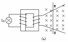(6分)如图所示,(a)图中两根导轨不平行,而(b)图中两根导轨平行,金属棒MN在导轨上均向右匀速平动,在金属棒在运动过程中,将观察到L1 ;L1 。(填“发光”或“不发光”)