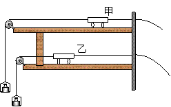 (2)(7分)在探究“牛顿第二定律”时,某小组设计双车位移比较法来探究加速度与力的关系.实验装置如图所示,将轨道分上下双层排列,两小车后的刹车线穿过尾端固定板,由安装在后面的刹车系统同时进行控制(未画出刹车系统).通过改变砝码盘中的砝码来改变拉力大小.通过比较两小车的位移来比较两小车的加速度大小,是因为位移与加速度的关系式为 .已知两车质量均为200g,实验数据如表中所示: