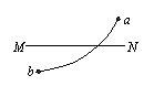 如图所示,MN是负点电荷产生的电场中的一条电场线.一个带正电的粒子(不计重力)从a到b穿越这条电场线的轨迹如图中虚线所示.则该带电粒子在a点的加速度一定____于在b点的加速度.带电粒子在a点时的电势能一定____于在b点时的电势能.
