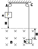 的两个正方形线框P、Q,分别悬挂在滑轮A和C的两侧,其质量分别为