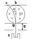 质谱仪是一种测带电粒子质量和分析同位素的重要工具。现有一如图形式的质谱仪,离子源S产生出质量为m,电量为q的速度可忽略不计的正离子,出来的离子经电场加速,从a点沿ab方向进入磁感强度为B,半径为R的圆形匀强磁场区域,调节加速电压U,使离子出磁场后能打在过b点并与ab垂直的记录底片的某点c上,测出c点与磁场中心O点的连线和Ob间的锐角θ,求证该粒子的荷质比