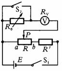 ③保持开关S1闭合和滑动变阻器滑片P的位置不变,断开开关S2,调整电阻箱R0的阻值大小,使电压表的指针指到满刻度的一半;读出此时电阻箱R0的阻值,即等于电压表内阻RV.