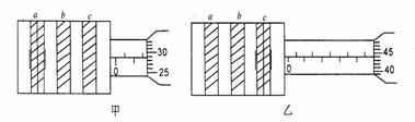 ( 2 )在实验中,用某种单色光通过双缝在光屏上得到明暗相间的干涉条纹,其中亮纹a、c的位置利用测量头上的分划板确定,如图所示.其中表示 a 纹位置(图甲)的手轮读数为________mm,其中表示 c纹位置(图一)的手轮读数为________mm,