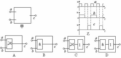 5、如图所示,甲图方框中a、b接线柱输入电压和c接线柱输出电压如图乙所示,则方框中的电路可能是 ( )