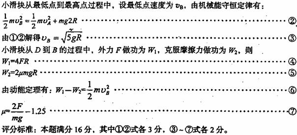置一可视为质点的小滑块,小滑块在大小为F的外力作用下运动到B点撤去外力,小滑块恰能通
