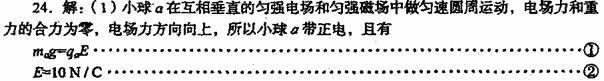 (1)小球a和b分别带什么电?电场强度E与磁感应强