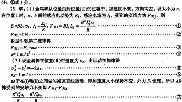 (Ⅱ)时,棒与MN、QlQ2相接触于c、d两点。已知s1=7.5 m。求: