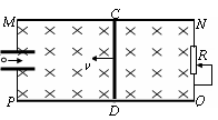 空间有水平匀强磁场,磁感应强度为B=10 T,方向垂直于导轨所在平面。导体棒CD与导轨接