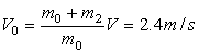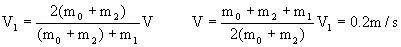 m1离开墙角后,同理:(m0+m2)V=m1V1+(m0+m2)V2 (4分)