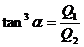 在P点保持平衡。 若不计小球重力,则PA与AB连线间的夹角α与Q1、Q2应满足的关系是