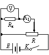说明:电路不采用分压法,扣1分;电流表内接,且只写出Rx=