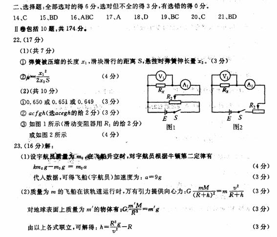 3. ( 12分)2005 年 10月12日,我国神舟六号载人飞船成功发射,这标志着我国的航天事业发展到了新的水平。为了使飞船顺利升空,飞船需要一个加速过程,在加速过程中,宇航员处于超重状态,人们把这种状态下宇航员对座椅压力与静止在地球表面所受重力的比值,称为耐受力值,用K表示;在选拔宇航员时,要求他在此状态的耐受力值为4≤K≤12 。神舟六号变轨后以速度 v 沿圆形轨道环绕地球运行,已知地球半径为 R ,地球表面重力加速度为 g 则: