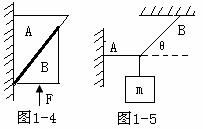 5、图1-5中重物的质量为m,轻细线AO和BO的A、B端是固定的。平衡时AO是水平的,BO与水平面的夹角为θ。AO的拉力F1和BO的拉力F2的大小是( )