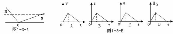 ,M、N两点高度相同。小球自M 点由静止自由滚下,忽略小球经过O点时的机械能损失,以v、s、a、Ek分别表示小球的速度、位移、加速度和动能四个物理量的大小。下列图1-3-B能正确反映小球自M点到N点运动过程的是