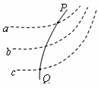 如图所示,虚线a、b、c代表电场中的三条等差等势线,即Uab=Ubc,实线为一带正电的质点仅在电场力作用下通过该区域时的运动轨迹,P、Q是这条轨迹上的两点,据此可知以下说法中正确的是