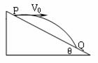 (8分)在某质量分布均匀的星球表面上,宇航员从斜坡上P点沿水平方向以初速度v0抛出一个小球,落到斜坡上另一点Q,测得P、Q间距为L,斜坡的倾角为θ,已知该星球半径为R,求:绕星球做匀速圆周运动的人造卫星的最小周期T。