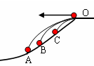 4.三名滑雪运动员从同一平台上的O点先后以速度vA、vB、vC沿水平方向跃出并分别落在A、B、C三点,如图所示,所用时间分别为tA、tB、tC则以下关系正确的是 ( )