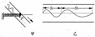 当小球振动时,垂直于振动方向以恒定的加速度拉动纸带,这时笔芯在纸带上画出如图乙所示的一条曲线。已知纸带加速度a的大小和图乙中S1、S2的长度,则T= 。