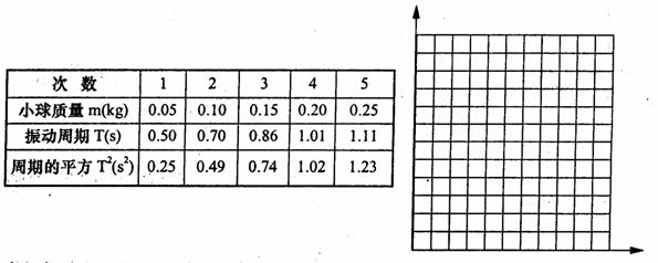 (2)下表中记录了换用不同质量的小球实验时,小球的质量m与振动周期T对应的数据。为了方便直观地判断小球的质量m与振动周期T的数量关系,请在下面方格坐标纸中选择适当的物理量建立坐标系,并作出图线。