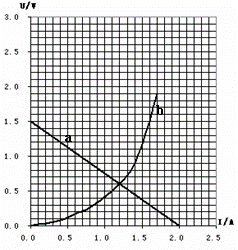⑶将实验②中得到的数据在实验①中同一U-I坐标系内描点作图,得到如图所示的图线b,如果将实验①中的电池与实验②中的小灯泡组成闭合回路,此时小灯泡的实际功率为 W.若将两节与实验①中相同的干电池串联后与该小灯泡组成闭合回路,则此时小灯泡的电压为 V,实际功率为___ W.