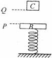 固定在水平面上的竖直轻弹簧,上端与质量为M的物块B相连,整个装置处于静止状态时,物块B位于P处,如图所示。另有一质量为m的物块C,从Q处自由下落,与B相碰撞后,立即具有相同的速度,然后B、C一起运动,将弹簧进一步压缩后,物块B、C被反弹。有下列几个结论: