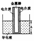 14.传感器是把非电学量(如高度、温度、压力等)的变化转换成电学量变化的一种元件,它在自动控制中有着广泛的应用.如图是一种测定液面高度的电容式传感器的示意图.金属棒与导电液体构成一个电容器,将金属棒和导电液体分别与直流电源的两极相连接,从电容C和导电液与金属棒间的电压U的变化就能反映液面的升降情况,即