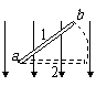 如图所示,磁场方向竖直向下,通电直导线ab由图示位置1绕a点在竖直平面内转
