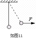 16.(12分)如图11所示,质量为m的小球用长为L的轻细线悬挂在天花板上,小球静止在平衡位置.现用一水平恒力F向右拉小球,已知F=0.75mg,问在恒定拉力F作用下,细线拉过多大角度时小球速度最大?其最大速度是多少?