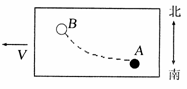 6、如图(俯视图)所示,以速度V匀速行驶的列车车厢内有一水平桌面,桌面上的A处有一小球。若车厢中的旅客突然发现小球沿图中虚线由A向B运动。则由此可判断列车