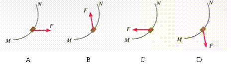 4.我国“嫦娥一号”探月卫星经过无数人的协作和努力,终于在2007年10月24日晚6点多发射升空。 如图所示,“嫦娥一号”探月卫星在由地球飞向月球时,沿曲线从M点向N点飞行的过程中,速度逐渐减小。在此过程中探月卫星所受合力方向可能的是 ( )