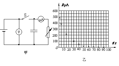 试根据上述实验结果,在图乙中作出电容器放电的I-t图象,并估算出该电容器两端的电压为U0时所带的电量Q0约为 ___________C;该电容器的电容C约为____________F