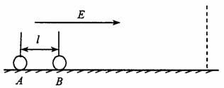15.如图所示,在一光滑绝缘水平面上,静放着两个可视为质点的小球,两小球质量均为m,相距l,其中A球带正电,所带电荷量为q,小球B不带电。若在A球右侧区域加一水平向右的匀强电场,场强为E,A球受到电场力的作用向右运动与B球碰撞。设每次碰撞前后两球交换速度,且碰撞过程无电荷转移。若两小球恰在第三次碰撞时离开电场。求: