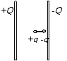 4.一平行板电容器的电容为C,两板间的距离为d,左板带电+Q,右板带电-Q,它们产生的电场在很远处的电势为零。两个带异种电荷的小球用一绝缘刚性杆相连,小球的电量都为q,杆长为l,且l<d。现将它们从很远处移到电容器内两极板之间,处于如图所示的静止状态(杆与板面垂直)。设两球移动过程中极板上电荷分布情况不变。在此过程中,电场力对两个小球所做总功的大小为