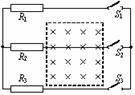 两金属棒和三根电阻丝如图连接,虚线框内存在均匀变化的匀强磁场,三根电阻丝的电阻大小之比R1:R2:R3=1:2:3,金属棒电阻不计。当S1、S2闭合,S3 断开时,闭合的回路中感应电流为I,当S2、S3闭合,S1 断开时,闭合的回路中感应电流为5I,当S1、S3闭合,S2 断开时,闭合的回路中感应电流是( )