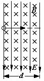 如图所示,某一真空区域内充满匀强电场和匀强磁场,此区域的宽度d = 8 cm,电场强度为E,方向竖直向下,磁感应强度为B,方向垂直纸面向里,一电子以一定的速度沿水平方向射入此区域.若电场与磁场共存,电子穿越此区域时恰好不发生偏转;若射入时撤去磁场,电子穿越电场区域时,沿电场方向偏移量y = 3.2 cm;若射入时撤去电场,电子穿越磁场区域时也发生了偏转.不计重力作用,求: