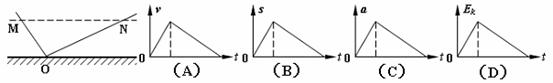 1.如图所示,光滑轨道MO和ON底端对接且ON=2MO,M、N两点高度相同。小球自M点由静止自由滚下,忽略小球经过O点时的机械能损失,以v、s、a、EK分别表示小球的速度、位移、加速度和动能四个物理量的大小.下列图象中能正确反映小球自M点到N点运动过程的是 ( )