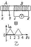 紧靠在一起的线圈A与B如图甲所示,当给线圈A通以图乙所示的电流(规定由a进入b流出为电流正方向)时,则线圈B两端的电压变化应为下图中的 ( )