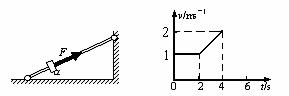 固定光滑细杆与水平地面成一定倾角,在杆上套有一个光滑小环,小环在沿杆方向向上的推力F作用下向上运动.0-2s内推力的大小为5.0N,2-4s内推力的大小变为5.5N,小环运动的速度v随时间变化规律如图所示,取重力加速度g=10m/s2.求: