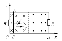 .一电阻为R的光滑导体棒AB与短边平行且与长边始终接触良好.起初导体棒处于x=0处,从t=0时刻起,导体棒AB在沿x方向的外力F的作用下做速度为v的匀速运动.试求: