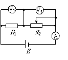 如图所示的电路中,A为理想电流表,V1和V2为理想电压表,R1为定值电阻,R2为可变电阻,电池E内阻不可忽略,则下列说法中正确的是( )