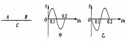 5. 如图所示,在一条直线上两个振动源A、B相距6m,振动频率相等。t0=0时刻A、B开始振动,且都只振动一个周期,振幅相等,振动图象A为甲,B为乙。若A向右传播的波与B向左传播的波在t1=0.3s时相遇,则