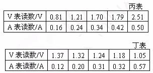 ⑵下边的表丙和丁是利用上面第⑴小题中的实物图且当滑动变阻器的滑动触头逐渐向右移动时依次测得的实验数据表,其中与甲图对应的表格是____表。