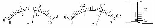 ⑶在伏安法测电阻的实验中电压表的量程为3V,电流表的量程为0.6A,用螺旋测微器测量电阻丝的直径,则下图中电压表的读数为____V,电流表的读数为______A,被测电阻丝的直径的测量值为_____mm。