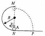 14. (14分)半径R=20cm的竖直放置的圆轨道与平直轨道相连接,如图所示。质量m=50g的小球A以一定的初速度由直轨道向左运动,并沿圆轨道的内壁冲上去。如果A经过N点时速度v1=4m/s,A经过轨道最高点M时对轨道的压力为0.5N,取g=10m/s2,求:
