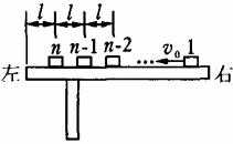 。开始时,第1个木块以初速度v0向左滑行,其余所有木块都静止,在每次碰撞后,发生碰撞的木块都粘在一起运动。最后第n个木块刚好滑到桌边而没有掉下。